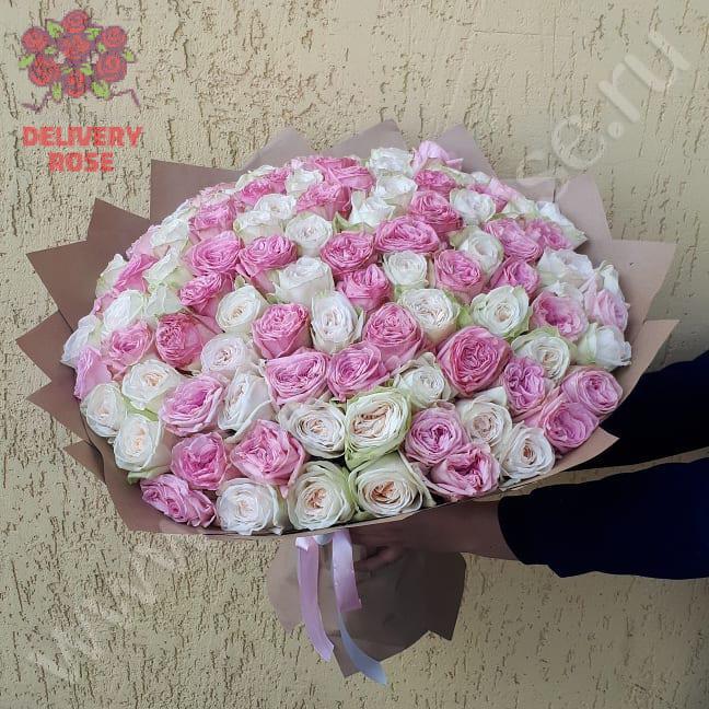 Букет из 101 розы сорта "Вайт охара и Пинк охара" с доставкой в город Раменское