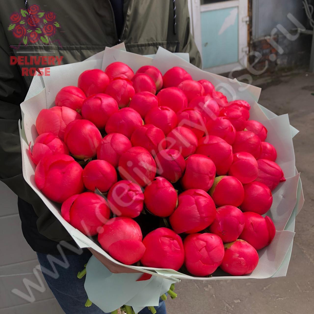 Букет пионов "Корал Шарм" - 51 шт. с доставкой в город Раменское