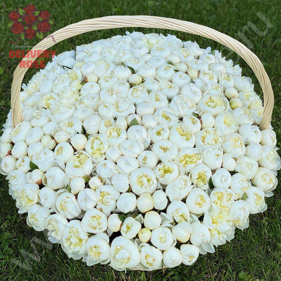 Роскошная корзина из 201 штуки белоснежных пионов